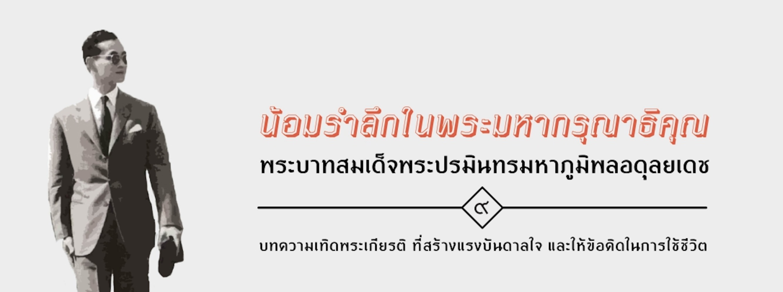เว็บไซต์จ๊อบไทยดอทคอม จึงขอน้อมนำเรื่องราวอันยิ่งใหญ่ของพระมหากษัตริย์ผู้เป็นที่รักยิ่งของประชาชนชาวไทย ผู้ทรงเป็นดั่งต้นแบบในการใช้ชีวิต และศูนย์รวมจิตใจของชาวไทยทั้งชาติ โดยได้รวบรวมเรื่องราวของพระบาทสมเด็จพระปรมินทรมหาภูมิพลอดุลยเดชที่ทรงเป็นแบบอย่างให้กับปวงชนชาวไทยในสายอาชีพต่างๆ เพื่อสร้างแรงบันดาลใจให้ได้น้อมนำไปประยุกต์ใช้และให้ข้อคิดในการใช้ชีวิต ดังนี้